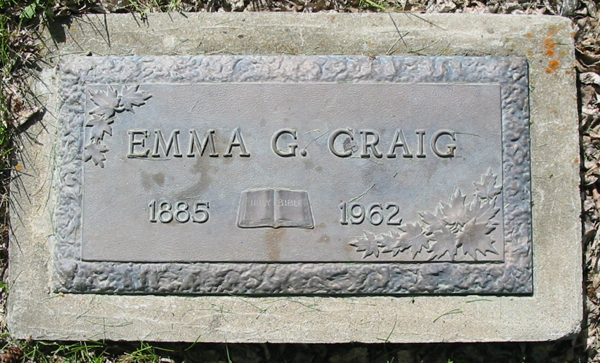 | Burial | She was buried in Medicine Hat, Alberta, CanadaG. Inscription: Emma G. Craig / 1885 - 1962.3 Marker, Emma Gertrude (Humphrey) Craig (1885-1962). Photo courtesy of Dann Craig. |