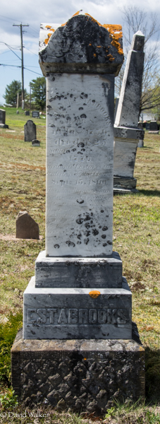 | Note | Rev. Elijah Estabrooks III, son of Sergeant Elijah II and Mary (Hackett) Estabrooks, was born at Haverhill, Mass., May 16, 1756. In 1777 he married, in N.B., Mary, daughter of Hezekiah and Mary (Chamberlain) Whittemore. She was born in 1761 and died May 13, 1824. They lived in Canning, Queens County, New Brunswick. On the 15th of September, 1800Elijah 'Preacher' Estabrooks, Jr. was ordained pastor of the Baptist Church in Canning, then Waterborough, Queens County, New Brunswick. This was the first Baptist Church on the St. John River and he was its' first Pastor. A description of this ceremony is contained in the Estabrooks-Palmer Records. The Estabrooks-Palmer Records at the New Brunswick Museum Archives in Saint John, New Brunswick, say that Elijah Estabrooks was ordained a Teaching Elder of the Baptist Church in Cambridge Parish, Queens County, New Brunswick, 15 May, 1800, and was an influential church leader on the Jemseg until his death in 1825. An account of the life of the life of Elijah Estabrooks, Jr. is given in the book, ‘Bill’s History of Baptists', also see 'Raymond's History', page 329. In 1808, he obtained land on Little River. He is referred to in several documents as the Rev. Elijah Estabrooks and he died on the 26th of September, 1825, and is buried at Upper Gagetown, New Brunswick, Canada. His tombstone was erected by contributions from the various congregations which he served. He was universally beloved and respected. He worked his farm during the week to support his family. On Sunday, he fulfilled his duties as Pastor. Note #1: Elijah, Jr. gave lots off his land to his sons as they married. These were confirmed at his death. The first lot at Queens-Sunbury went to his son, John. The second house was double and went to Joseph and Jarvis. The third section was a half lot and went to Charles. The fourth section, also a half lot, went to Jesse. Charles Estabrooks kept a store and the Post Office. The tannery was opposite Jesse Estabrooks place. Descendants of Elijah Estabrooks, Jr. are eligible for membership in the D.A.R. and S.A.R. The following is taken from the 'Massachusetts Solderers and Sailors of the Revolutionary War' Vol. 5. Page 156:'Easterbrooks, Elijah Jr. Private, Capt. Jabez West's Co. , Col, Jonathan Eddy’s Reg't: enlisted Nov, 14, 1776: discharged Dec. 16, 1776, service 1month, 5 days, company raised in Cumberland, N. S. Roll sworn to at Boston.' Elijah and Mary Estabrooks children: 1. Hezekiah Estabrooks, b. July 18, 1779, and died Aug. 4, 1869. He married first, in 1803, Emmeline Turney, and second, in 1811, her sister, Sarah Turney. He married third, in 1835, Mrs. Catherine (Knox) Corey. On Sept. 21, 1811, he bought lots 42 to 48 inclusive in the Parish of St. Mary's, York Co., on the south east side of the Nashwaak River, and part of Pennyauk Island, from John Harris and his wife who were Maryland Loyalists. (York County Records D4 pg. 280). On September 19, 1814, he and John Manzer, as trustee of the Calvinist Baptist Church, bought a lot of land from John Coy for a church. This was in the Parish of St. Mary’s on the west side of the Nashwaak River on the main road. (York County Records D4 pg. 280). In 1819 he sold his land on Maquapit Lake to Elijah Estabrooks, Jr. The date of his death is uncertain. He had several children: George Estabrooks (m. Mart Abbott); Emmeline Estabrooks (m. Mr. White and lived in Houlton, Maine.); Mary Estabrooks (David Manzer and lived on the Nashwaak); Elijah Estabrooks (m. 1st, Abigail Dennison, 2nd, Esther Logan). He kept store in Fredericton, N.B.; Sarah Estabrooks (m. Bernard B. Manzer); Pruella Estabrooks (m. Mr. Dennison);Hezekiah Estabrooks (m. Ann McDowall); Turney Estabrooks (m. 1st,Catherine McLean, 2nd, Mary Logan). He lived at Nashwaak and in Fredericton, N.B.; Charles Estabrooks (m. 1st, Lydia Goodspeed, 2nd, Martha Gilmore). He and his second wife moved to Marinette, Wisconsin: Harding Estabrooks (m. Lucy Brown); Ruth Estabrooks (m. Michael White): Frederick Estabrooks (m. Christiana Dennison); and Calvin Estabrooks (m. Catherine Lawrence). He was a storekeeper at St. Mary's, opposite Fredericton, N.B. 2. Mary Estabrooks, b. Sept. 8, 1871, died young. 3. Hannah Estabrooks, b. Jun. 23, 1783, d. 1853; m. Abner Brooks Jr. He was born June 23, 1783. Their children were: 3.1 Elijah, 3.2 Thomas, 3.3Nelson, and 3.4 Emily Brooks. 4. David Hackett Estabrooks, b. Jan. 24, 1787, d. at Rockland, c1873, in his 87th year; m. Sept. 24, 1814, at St. John's Anglican Church, Gagetown, N.B., Sarah, daughter of Archelus and Hannah (Birdsell) Purdy, who were Loyalists from White Plains, N.Y. She was born at Jemseg, N.B., Mar. 31, 1791, and died at Rockland c1877, aged 86 years. The Estabrooks Genealogy gives their marriage date as 1808 but George H. Hayward believes the church record, which shows 1814, is probably more correct. Also, the Estabrooks Genealogy records that they got land in Wakefield, Carleton County, N.B., in 1816 but settled in Brighton in 1829. The Parish of Brighton was not set off from 'old Wakefield' until 1830, so George H. Hayward thinks it more likely they came directly to Rockland in1816, although Sarah's obituary said she came to Brighton in 1823. In any event, they came to Carleton County about 150 years ago and were granted Lot No. 7, 256 acres, at Rockland on the southerly side of the Becaguimec River, where they lived the remainder of their lives, about 50years. David Estabrooks is said to have been a Deacon of the Free Baptist Church for over 50 years, and to have given land for the cemetery on his farm at Rockland where he and Sarah were buried. Their children were: 4.1 David Jarvis Estabrooks (shown on the family tombstone at Rockland as Jarvis D.), b. near Fredericton, N.B., Aug. 6, 1818, d. May 15, 1848; m. Nov. 16, 1845, Millicent Peters Nevers, daughter of Alexadner andMillicent (Peters) Nevers. She was born April 14, 1826, and died Oct. 191889. Their only child, Isabel Eli