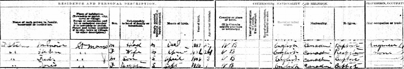 | Occupation | He was a store manager. in 1910 in Moncton, Westmorland County, New Brunswick, CanadaG.4 |