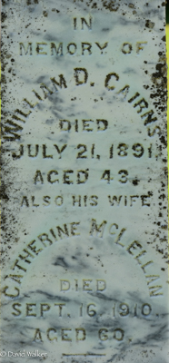 - [S5065] Cemetery Marker - John Cairns & Maria Crawford. John Cairns & Maria Crawford, Tombstone inscription; David A. Walker, 29 August 2010.