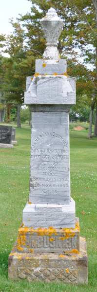 - [S9820] Cemetery marker, United Baptist Cemetery, Central Bedeque, Prince County, Prince Edward Island, Canada. John Lewis & Sarah Van Buskirk family plot, marker inscription; read by David A. Walker, 4 August 2014.