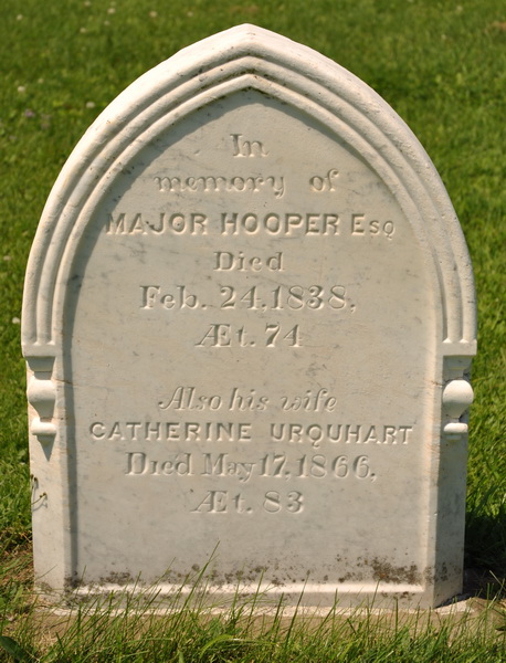 | Burial | She was buried in the Presbyterian Cemetery, North Bedeque, Prince County, Prince Edward Island, Canada, 46.36186, -63.72584G.3![]() Tombstone, Major Hooper (1765-1838) and Catherine Urquhart (1783-1866)North Bedeque Cemetery, Prince County, Prince Edward Island, Canada. |
