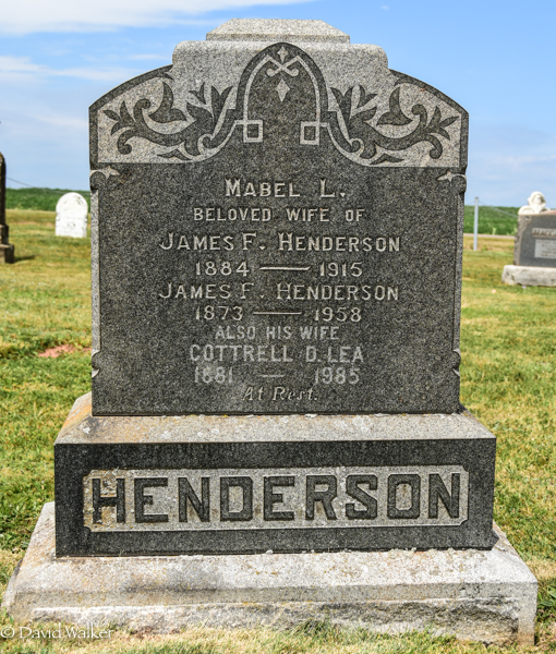 - [S14440] Cemetery marker, Presbyterian/United Cemetery, North Bedeque, Prince County, Prince Edward Island, Canada. James F. Henderson, his wives Mabel L. & Cottrell D. Lea, tombstone inscription & photograph; documented by David A. Walker, 15 August 2019.