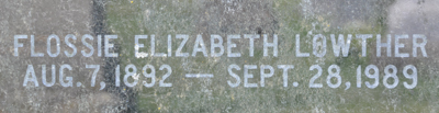 | Burial | She was buried in the United Church Cemetery, Searletown, Prince County, Prince Edward Island, Canada, 46.30267, -63.69031G. Inscription: LEARD / J. Prince Leard / 1860 - 1938 / His Wife / Alice J. Wright / 1862 - 1941 / Gone But Not Forgotten Back: Flossie Elizabeth Lowther / Aug. 7, 1892 - Sept. 28, 1989 (Flossie Elizabeth is their daughter.)2 Tombstone, John Prince Leard (1860-1938), his wife Alice Jane Wright (1862-1941), their daughter Flossie Elizabeth (1892-1989). United Church Cemetery, Searletown, Prince County, Prince Edward Island, Canada.  Front inscription detail.  Back inscription detail. |