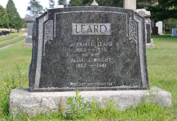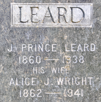 - [S9556] Cemetery marker. Prince Leard & Alice Wright, inscription; read by David A. Walker, 12 August 2014.