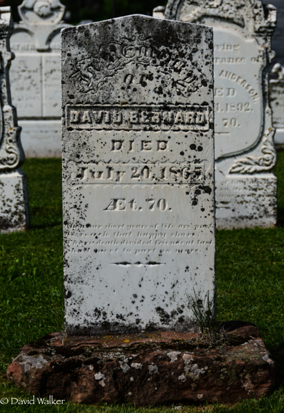 Inscription: David Bernard / Died / July 20, 1865 / Æt. 70.4,1  Marker, David Bernard (1795-1865). Geddie Memorial Cemetery, Springbrook, Queens County, Prince Edward Island, Canada.