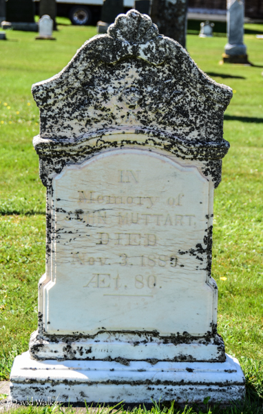 Inscription: In / Memory of / John Muttart / Died / Nov. 3, 1889 / Æt. 80.1  Tombstone, John Muttart (1810-1889). United Church Cemetery, Cape Traverse, Prince County, Prince Edward Island, Canada.