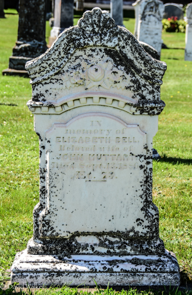 - [S12610] Cemetery Marker, United Church Cemetery, Cape Traverse, Prince County, Prince Edward Island, Canada. Elizabeth Bell, photograph & inscription; read by David A. Walker, 28 August 2016.