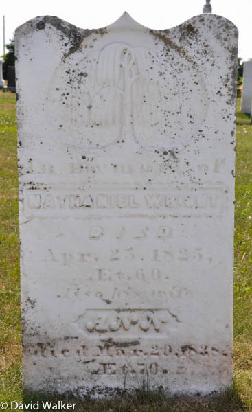 Inscription: In memory of / Nathaniel Wright / Died / Apr. 25, 1825, / Æt. 60. / Also his wife / Ann / died Mar. 20, 1838, / Æt. 70.2  Tombstone, Nathaniel Wright (1765-1825), his wife Ann Lord (1770-1838). United Church Cemetery (Bedeque Cemetery), Lower Bedeque, Prince County, Prince Edward Island, Canada.