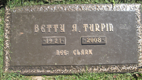 | Burial | She was buried in Floral Hills Memorial Gardens, Pleasant Valley, Queens County, Prince Edward Island, CanadaG.2 Marker, Betty A. (Clark) Turpin (1921-2008). Floral Hills Memorial Gardens, Queens County, Prince edwaed Island, Canada. Photo courtesy of MacNaught History Centre & Archives, Summerside, Prince Edward Island. |