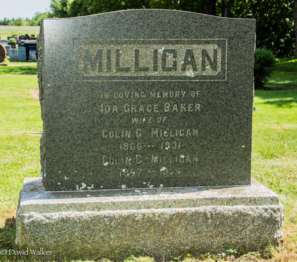- [S12303] Cemetery marker, Peoples Cemetery, Summerside, Prince County, Prince Edward Island, Canada. Colin G. Milligan family plot, tombstone inscription & photograph; read by David A. Walker, 3 July 2017.