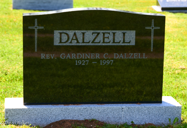 Inscription: DALZELL / Rev. Gardiner C. Dalzell / 1927 - 1997.1,3  Cemetery marker, Rev. Gardiner C. Dalzell (1927-1997). Peoples Cemetery, Kensington, Prince County, Prince Edward Island, Canada.