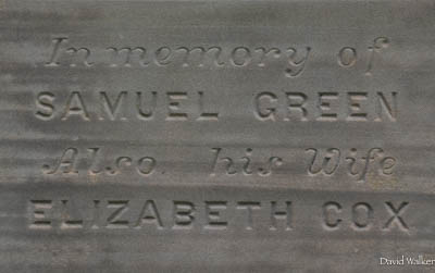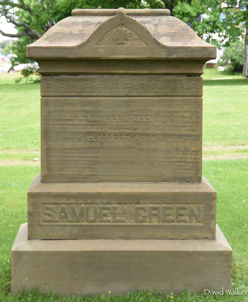 - [S11580] Cemetery marker, St. John's Anglican Church Cemetery, St. Eleanors, Prince County, Prince Edward Island, Canada. Samuel Green & Elizabeth Cox, tombstone inscription & photograph; read by David A. Walker, 28 June 2016.