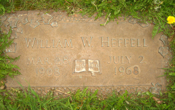 Inscription Front: William W. Heffell / Mar. 28, 1908 | July 2, / 1968.2  Tombstone, William Wallace Heffell (1908-1968). Floral Hills Memorial Gardens, Pleasant Valley, Queens County, Prince Edward Island, Canada. Photo courtesy of peiancestry.com