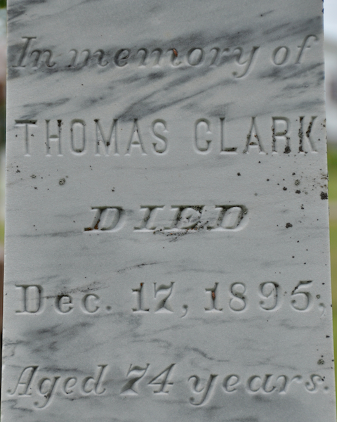 - [S4517] Cemetery Marker: Thomas Clark. Thomas Clark, Cemetery Marker; David A. Walker, 5 July 2010.