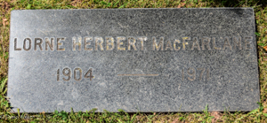 | Interred | He was buried in the plot of Lorne Herbert MacFarlane, in the Peoples Cemetery, Summerside, Prince County, Prince Edward Island, CanadaG.