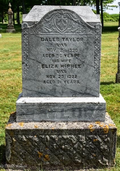 - [S14502] Cemetery marker, United-Baptist Cemetery, Central Bedeque, Prince County, Prince Edward Island, Canada. Caleb Taylor & Eliza McPhee, tombstone inscription & photograph; documented by David A. Walker, 23 August 2019.