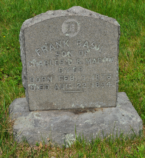 | Burial | He was buried in Pocasset Cemetery, Cranston, Providence County, Rhode Island, USAG. Frank was buried in the Old Grounds Family Plot.5 Frank Basil Dyer (1876-1894). Photo courtesy of findagrave.com. |