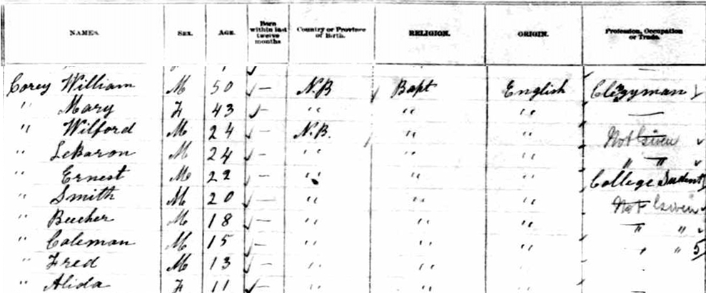 | Birth | Israel Corey was born in December 1832, in Queens County, New Brunswick, CanadaG.1 |