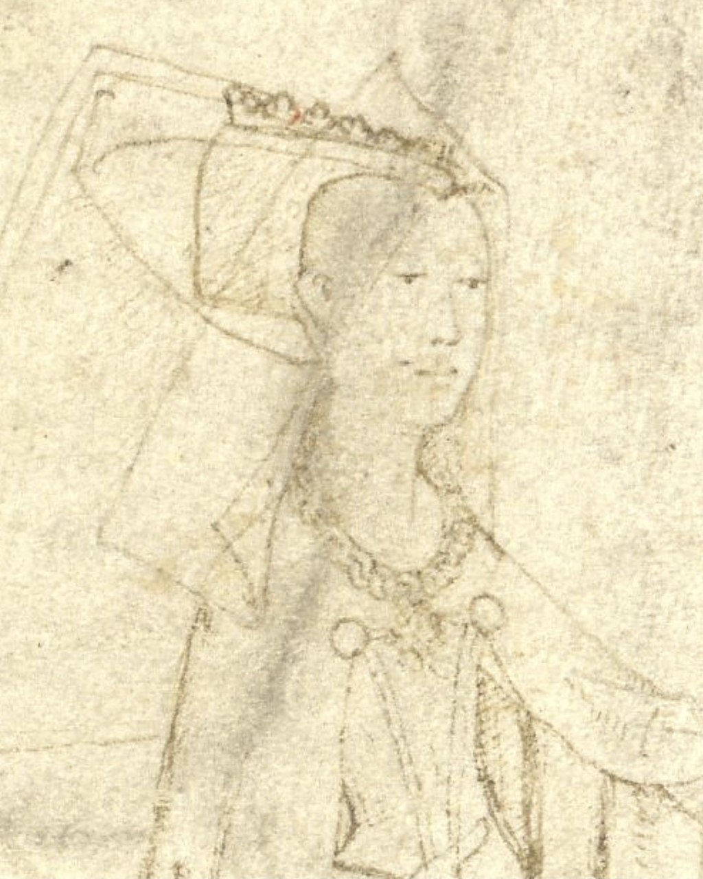 Drawing of Isabel Neville from the Rous Roll, ca. 1483. Courtesy of Wikipedia.