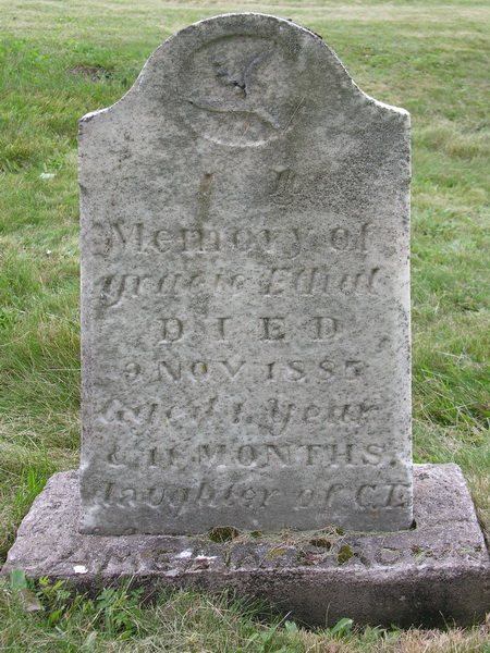 | Burial | She was buried in Kirk Hill Cemetery, Sussex, Kings County, New Brunswick, Canada, 45.727383, -65.517917G. Marker inscription: "Memory of / gracie Ethul / DIED / 9 Nov 1885 / Aged 1 Year / & 11 months / daughter of C.E. /" "Amelia Brown" was added by hand on what is likely a new cement base. The original stone was broken and the last line indicating "& Amelia Brown" is barely visible.1 ![]() Tombstone, Grace Ethel/Ethul Brown (1883-1885), Kirkhill Cemetery, Sussex, New Brunswick, Canada. |