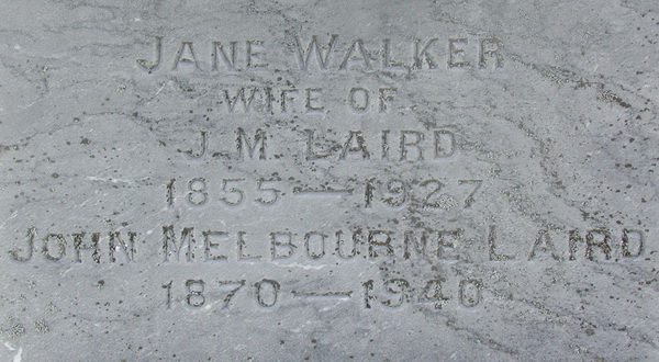 - [S2241] Marker Inscription. John Melbourne Laird, Marker Inscription; David A. Walker, August 2004.