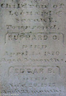 - [S2220] Cemetery marker: Leonard Townsend Children. Children of Leonard Townsend & Sarah Boss, Digital image; David A. Walker, 5 August 2005.