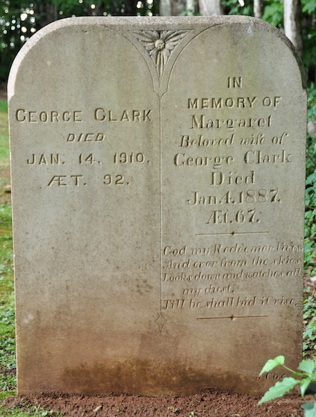 - [S2842] Cemetery Marker - George Clark. George Clark & Margaret Clark, Marker Inscription; David A. Walker, 11 August 2010.