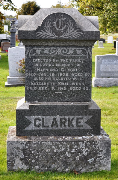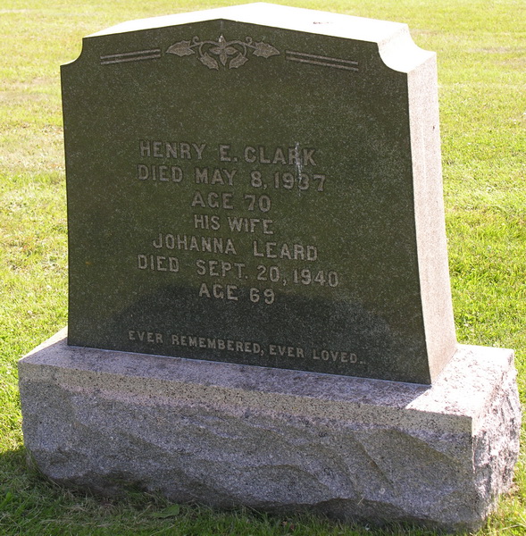 | Burial | He was buried in the Peoples Cemetery, Mount Stewart, Queens County, Prince Edward Island, Canada, 46.36386, -62.84999G. Inscription: CLARK / 1877 Ira H. Clark 1948 / His Wife / 1881 Lottie M. Leard 1951 / In Time We Shall Meet Again.7,8 Tombstone, Ira Haviland Clark (1877-1948), his wife Lottie May Leard (1881-1951). The Peoples Cemetery, Mount Stewart, Queens County, Prince Edward Island, Canada. |
