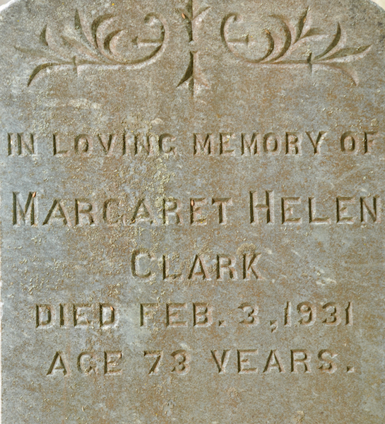- [S4873] Marker Inscription - Margaret Helen Clark. Margaret Helen Clark, Marker Inscription; David A. Walker, 11 August 2010.