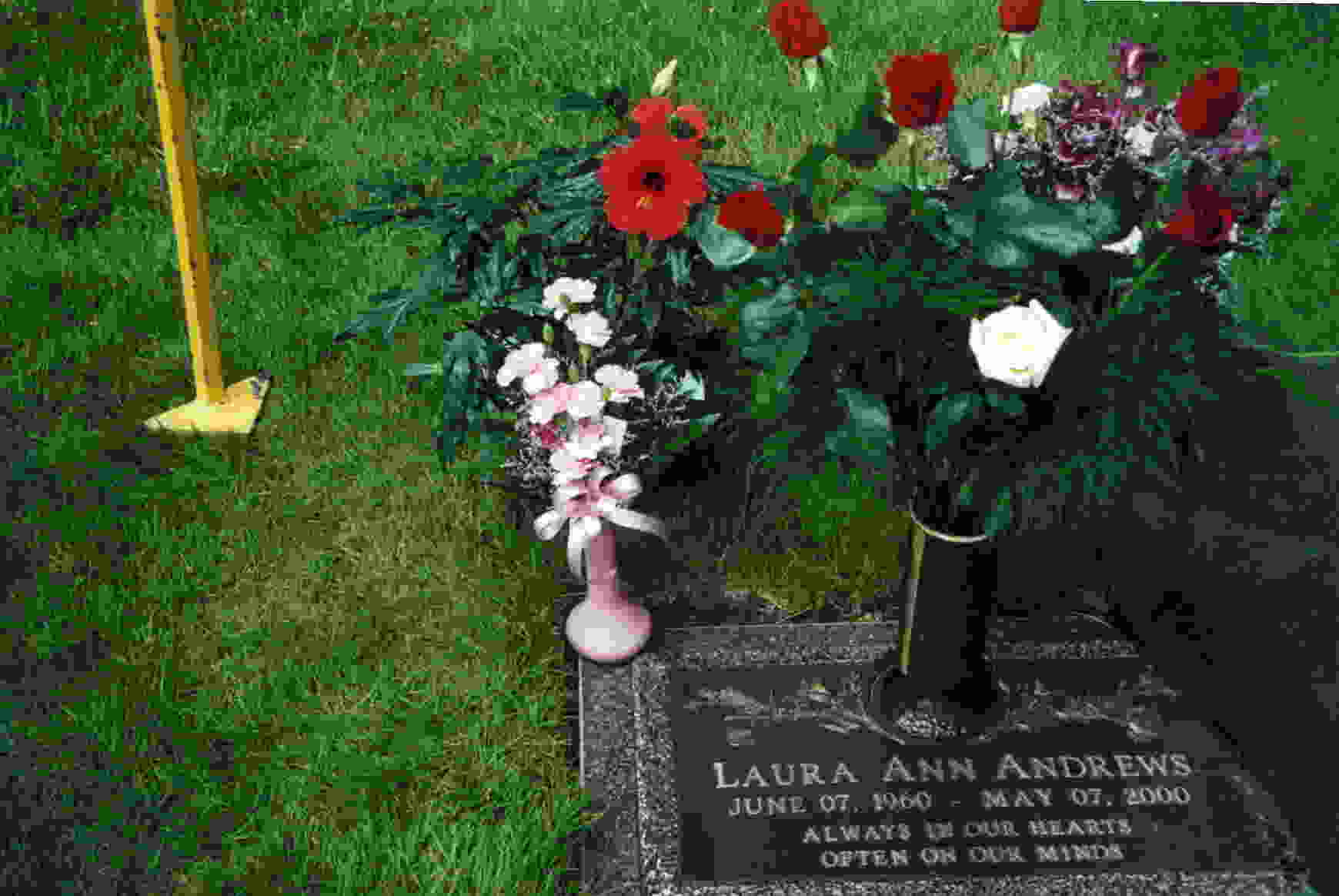 | Burial | She was buried in Valley View Memorial Gardens, Surrey, British Columbia, CanadaG.1 Cemetery Marker, Laura Ann Andrews (1960-2000). Valley View Memorial Gardens, Surrey, British Columbia, Canada. |