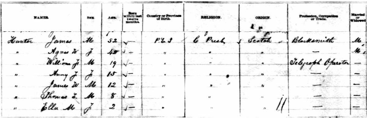 | Census | James Sharp was head of the household in the census on 4 April 1881 in Summerside, Prince County, Prince Edward Island, CanadaG. Enumerated in the household with James were his wife Barbara (Jamieson), son Rufus and mother-in-law, Ann (Walker) Jamieson.2 |