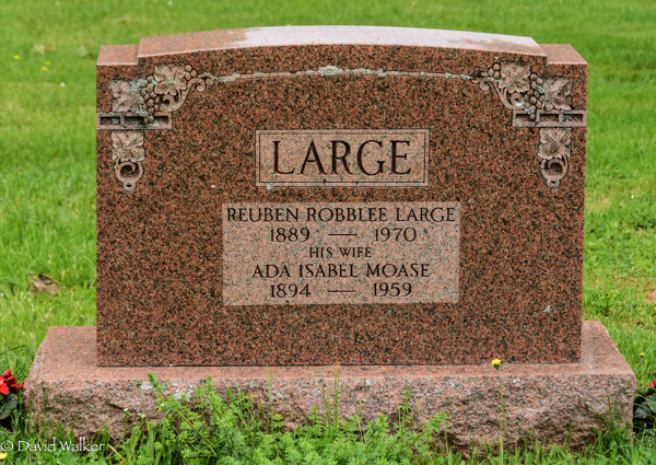 | Marriage | Reuben Robblee Large married Ada Isabel Moase daughter of Robert Thomas Moase and Lucy Burrows, on 11 February 1919, Reuben was a bachelor living in Albany, Prince County, Ada was a spinster living in Wilmot Valley.6,1 |