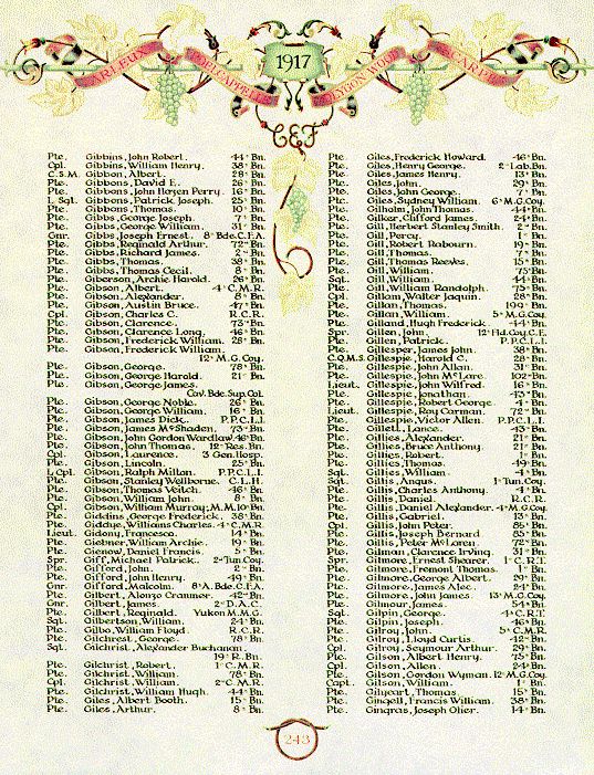 - [S3383] "Military Service Record - George Noble Gibson", Veterans Affairs Canada web site, The Canadian Virtual War Memorial; Veterans Affairs Canada, Veterans Affairs Canada, Ottawa,, Ontario, Canada. Hereinafter cited as "Military Service Record - George Noble Gibson".