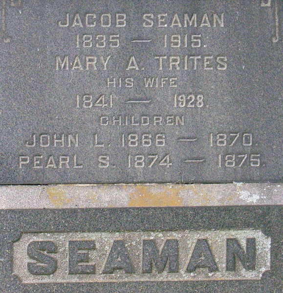 - [S3371] Cemetery Marker - Jacob Seaman (1834-1915). Jacob Seaman (1834-1915), Tombstone inscription; David A. Walker, 19 July 2005.