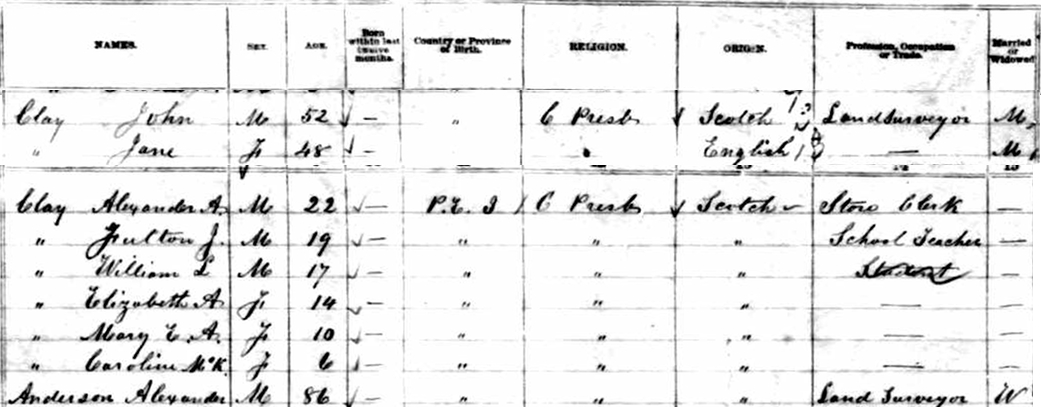 - [S13908] 1891 Canada Census, Moosejaw, Assiniboia West, the Territories, family #78 of William L. Clay, 24 April 1891, digital copy of original document, Library & Archives Canada, Ottawa; Microfilm reel T-6426, Page 14. Library & Archives Canada, Library & Archives Canada; 395 Wellington St., Ottawa,, Ontario, Canada.