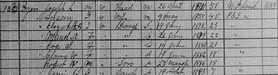| Census | Joseph Lake Dyer was head of the household in the census on 31 March 1901 in Lot 4, Prince County, Prince Edward Island, CanadaG. included in the household were Joseph's wife Susan (Wallace), daughters Elizabeth, Maud, Eva, Clara and Jennie, and son Robert. The family religion was entered as Church of England.4 1901 Canada Census for the household of Joseph L. Dyer, Lot 4, Prince County, Prince Edward Island, Canada. Included in the household were Joseph's wife Susan (Wallace), daughters Elizabeth, Maud, Eva, Clara and Jennie, and son Robert. |