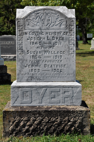 - [S3744] Cemetery Marker - Joseph L. Dyer (1849-1911) & Susan Wallace (1854-1919). Joseph L. Dyer (1849-1911) & Susan Wallace (1854-1919), Marker Inscription; David A. Walker, 20 August 2009.