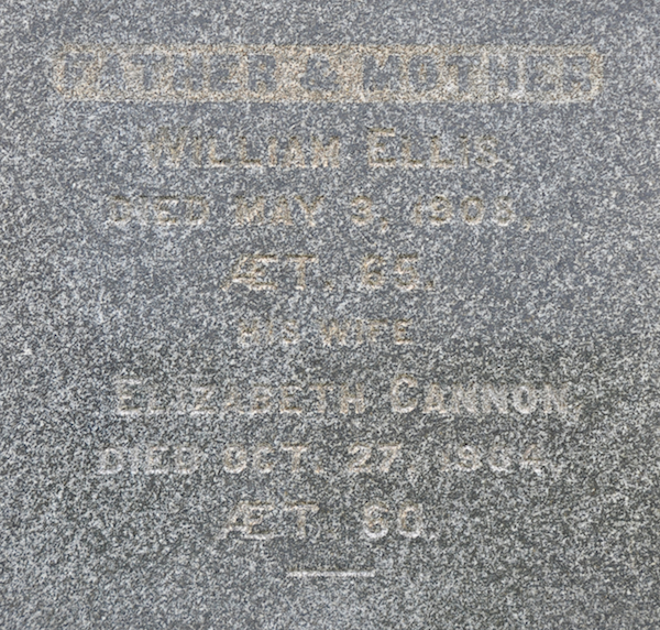 - [S3740] William Ellis (1843-1908) & Elizabeth Cannon (1844-1904) Marker Inscription; David A. Walker, 20 August 2009.
