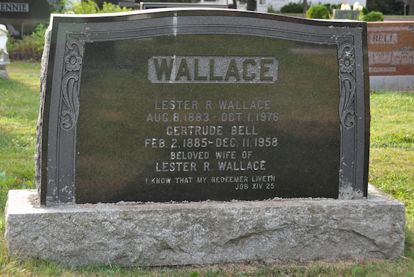| Burial | He was buried in United & Nazarene Church Cemetery, Elmsdale, Prince County, Prince Edward Island, Canada, 46.82236, -64.13655G. Inscription: WALLACE / Lester R. Wallace / Aug. 8, 1883 - Oct.1, 1976 / Gertrude Bell / Feb. 2, 1885 - Dec. 11, 1958 / Beloved Wife of / Lester R. Wallace / I know that my redeemer liveth / Job XIV 25.2,8 Tombstone, Lester Roy Wallace (1883-1976), his wife Gertrude Bell (1885-1958). United Church Cemetery, Elmsdale, Prince County, Prince Edward Island, Canada. |