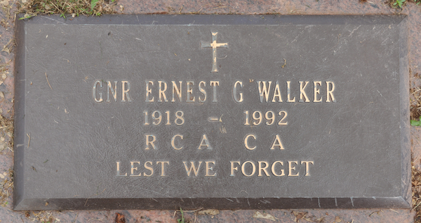 | Milit-Serv | Ernest George Walker served in the military in the 2nd Medical Battery. He enlisted at the outbreak of World War II, in September 1939, and went overseas in January 1940. He took part in the Mediterranean Campaign in Sicily and in the European War Zone. He was discharged in 1945.2 |