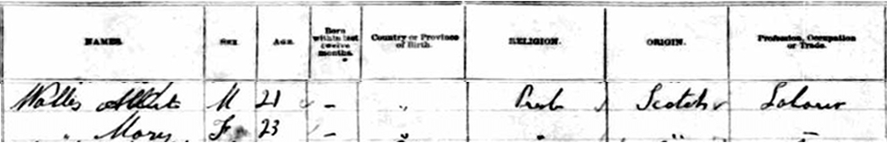 | Census | James Albert Wallace was head of the household in the census in 1881 in Lot 7, Prince County, Prince Edward Island, CanadaG. included in the household with Albert (age 21) was his wife Mary MacNevin (age 23). Albert was a labourer. They were both Presbyterian.4 1881 Canada Census, Lot 7, Prince County, Prince Edward Island. Household of Albert Wallace and his wife Mary MacNevin. |