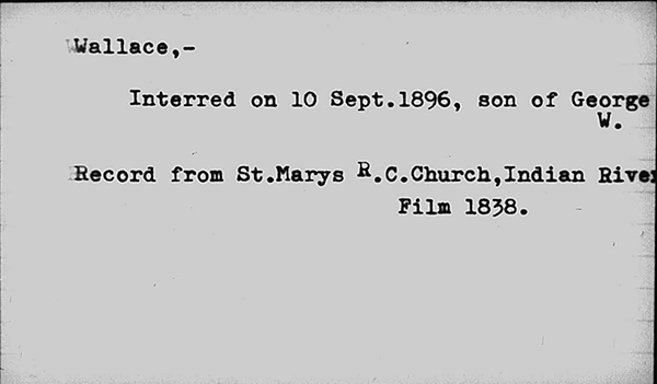 | Baptism | George Wallace was baptized on 22 August 1869 in St. Mary's Roman Catholic Church, Indian River, Prince County, Prince Edward Island, CanadaG; the officiating priest was James MacDonald.1 |