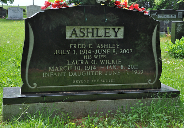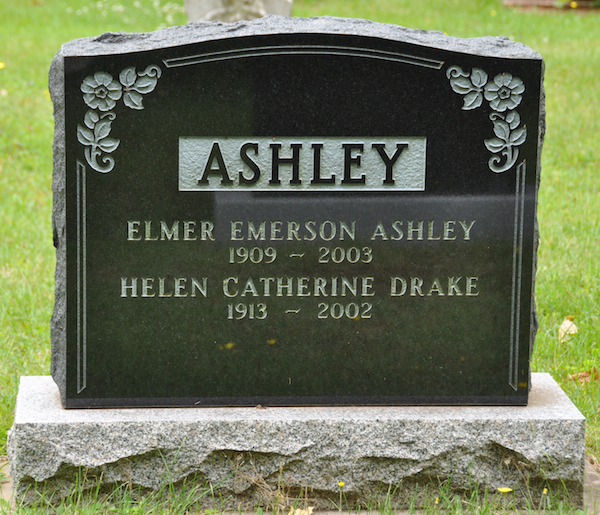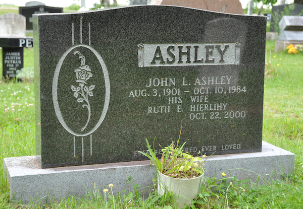 | Burial | He was buried in the United Church Cemetery, Cascumpec, Prince County, Prince Edward Island, Canada, 46.76376, -64.10855G. Inscription: ASHLEY / Harold H. Ashley / May 19, 1917 / July 19, 2001 / Married / Oct. 5, 1939 / Jessie E. Harris / Feb. 7, 1920 / Apr. 10, 2010 / Blessed are the dead who died in the Lord.Back: ASHLEY.3 Tombstone, Harold Huestis Ashley and his wife Jessie E. Harris. United Church Cemetery, Cascumpec, Prince County, Prince Edward Island. |