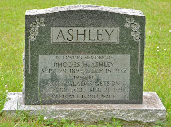 - [S4539] Cemetery Marker: Milton Rhodes Ashley. Milton Rhodes Ashley, Cemetery Marker; David A. Walker, 5 July 2010.