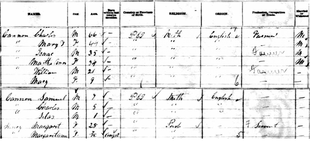 | Witness | She was enumerated on the census in 1861 in the household of Charles Bell in Plans, Dumfriesshire, Scotland, 55.013411, -3.422886G. included in the household were his wife Janet and children Elizabeth (age 15, scholar), Margaret (age 9, scholar), Janet (age 7, scholar), Agnes (age 6, scholar), Georgina (age 4) and Charlotte (age 2). Elizabeth Hyslop was also living in the household, described as mother-in-law. Charles' occupation was Millwright.1 |