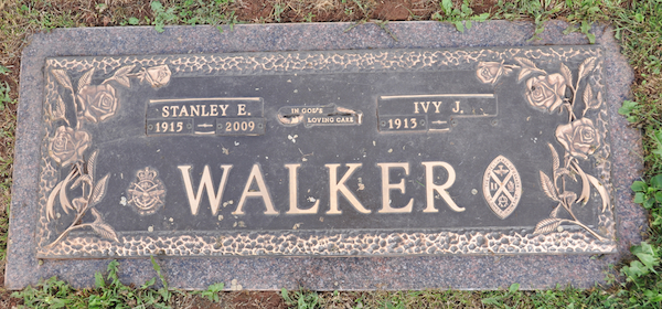 Stanley E. / 1915 - 2009 | In God's / Loving Care | Ivy J. / 1913 - // Together Forever / WALKER.1,2  Military Tombstone, Stanley Edward Walker (1915-2009), his wife Ivy Jean Anstey (1913- ). Floral Hills Memorial Gardens, Pleasant Valley, Queens County, Prince Edward Island, Canada.