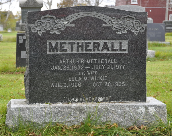 - [S8964] Cemetery marker, Hillcrest Cemetery, Alberton, Prince County, Prince Edward Island, Canada. Arthur R. Metherall & Lula M. Wilkie, tombstone inscription; read by David A. Walker, 21 October 2013.
