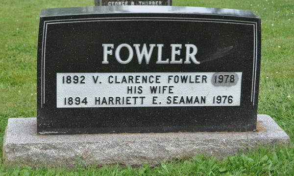 | Burial | He was buried on 9 June 1978 in Elmwood Cemetery, Moncton, Westmorland County, New Brunswick, Canada, 46.11092, -64.77464G. Inscription: FOWLER / 1892 V. Clarence Fowler 1978 / His Wife / 1894 Harriet E. Seaman 1976.3,2 Tombstone, Victor Clarence Fowler (1893-1978), his wife Harriett Elizabeth Seaman (1894-1976). Elmwood Cemetery, Moncton, Westmorland County, New Brunswick, Canada. |