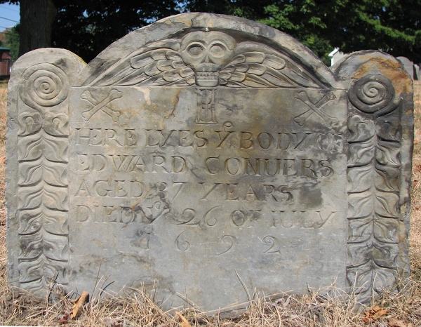 | Burial | He was buried Inscription: Here Lyes Ye Body of / Edward Convers / Aged 37 Years / Died 26 of July / 1692.2 Tombstone, Edward Converse (1655-1692). |